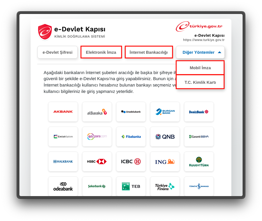 Sözleşme onayı verebilmek için e-Devlet'e aşağıdaki yöntemlerden biri ile giriş yapmalısınız:
