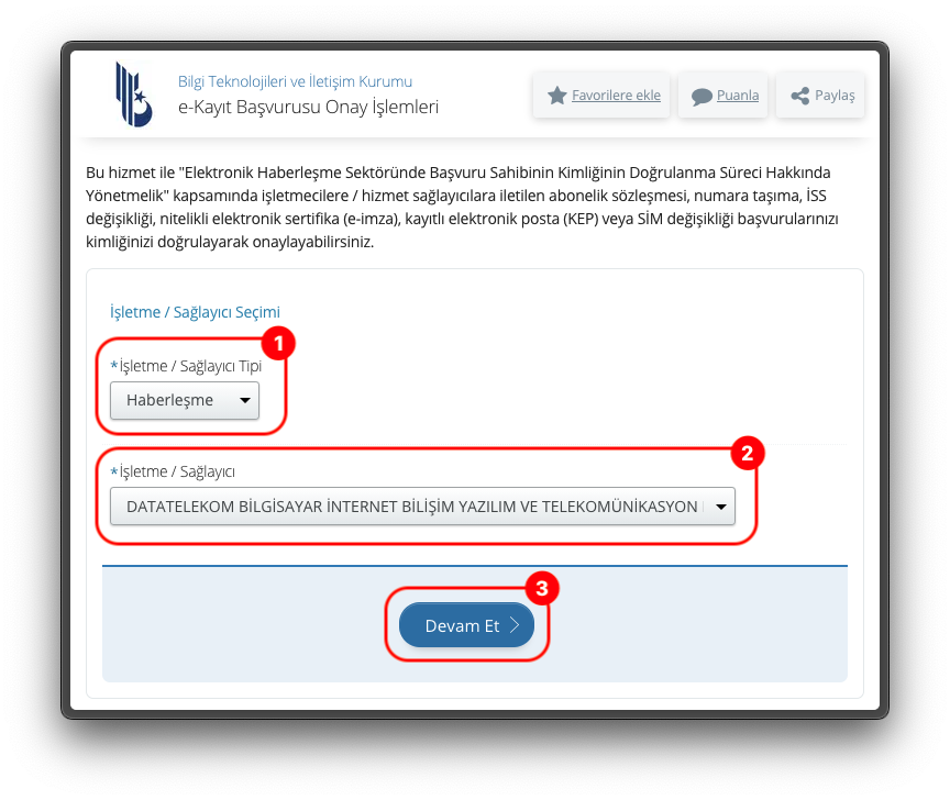 Açılan sayfadaki alanları aşağıdaki şekilde doldurun ve ardından "Devam Et" düğmesine tıklayın.