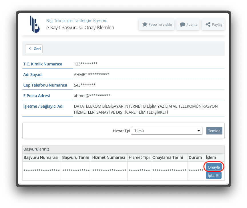 Tebrikler! Başvurunuzu e-Devlet üzerinden onayladınız. Kurulum süreci ile ilgili olarak ekibimiz sizinle iletişime geçecektir.