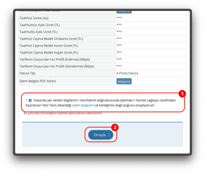 Detay bölümündeki adres, kimlik, paket ve diğer bilgilerinizi inceleyin, sayfanın alt kısmındaki onay kutucuğunu işaretleyin ve "Onayla" düğmesine tıklayın.